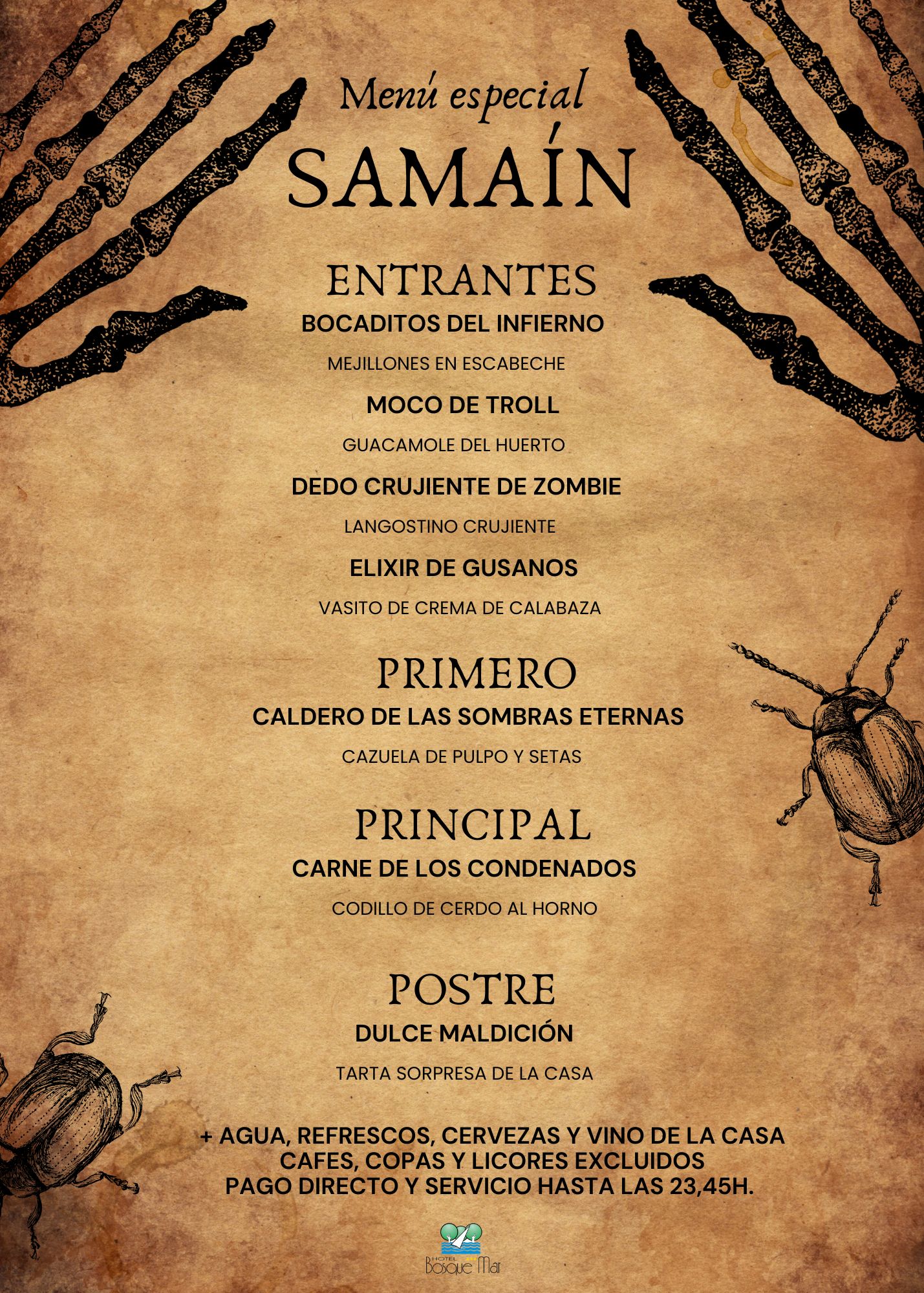 La cena de Samain con menú especial, durante la tarde noche del sábado estará llena de sorpresas. Además de regalos y sorteos para los asistentes, este año tendremos un un concurso de calabazas. No olvides traer tu calabaza de casa para poder participar. De entre todas las calabazas participantes, elegiremos las mejores y obsequiaremos con un regalo a los peques ganadores.
